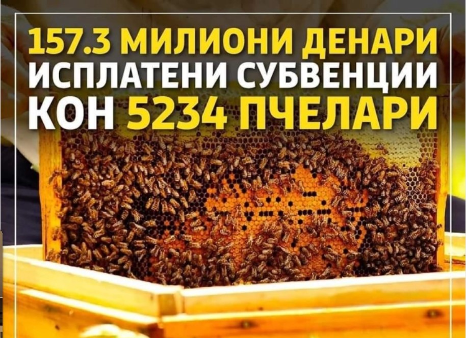 По овој основ се исплатени 5234 пчелари со вкупна финансиска поддршка од 157.3 милиони денари.