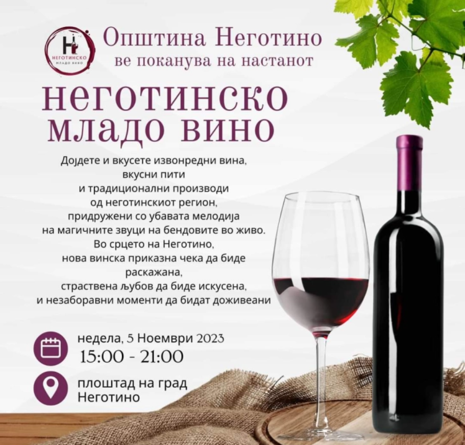 ,,Неготинско младо вино” е именуван настанот што ќе се одржи во недела на неготинскиот градски плоштад.