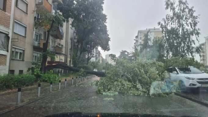 – Едно од дрвјата во населба „Мичурин“ во Аеродром, падна врз автомобили и на еден во движење, среќа само на задниот дел на автомобилот во движење, појаснуваат од ЦУК.
