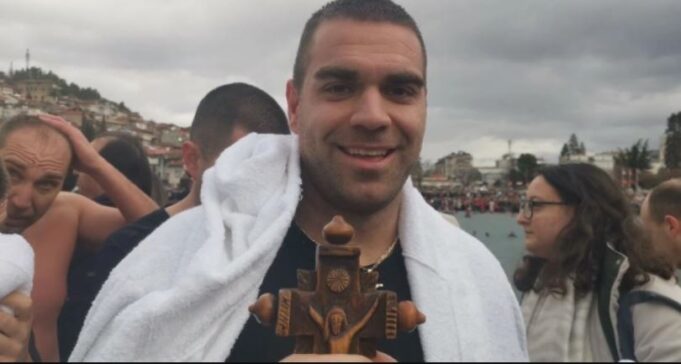 Никола Јакимоски од Охрид денеска беше најсреќен меѓу охриѓани. Тој беше највешт меѓу неколкуте стотини верници и успеа да го извади Чесниот крст од осветените води на Охридското Езеро.