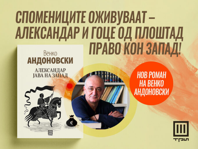 Во издание на Издавачки центар ТРИ денес пристигна најновото дело на Венко Андоновски, „Александар јава на запад“.