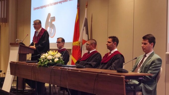 Со свечен Научно наставен совет, презентација на болидот изработен од студенти во рамки на проектот „Формула студент“ со кој ќе учествуваат на меѓународен натпревар и промоција на магистри и дипломирани инженери во календарската 2023 година, Машинскиот факултет од Скопје денеска го одбележа јубилејот – 65 години од почетокот со работа.