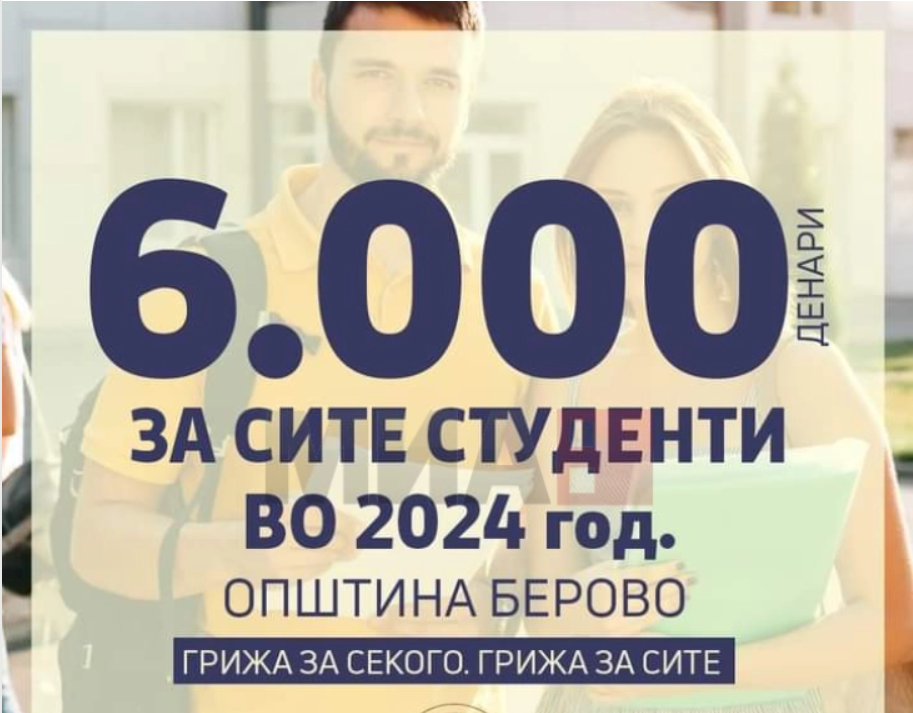 Согласно новата програма за 2024 година, тој ја најави мерката од 6.000 денари за секој студент од Берово.