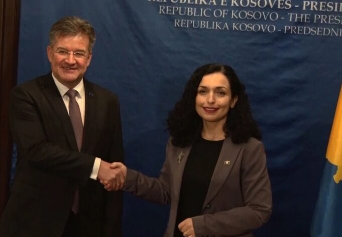 Претседателката на Косово, Вјоса Османи, на денешната средба со специјалниот пратеник на Европската унија за дијалог меѓу Белград и Приштина, Мирослав Лајчак, изјави дека Бриселскиот договор и Охридскиот анекс треба во целост да бидат спроведени.