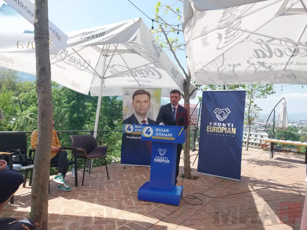 – Еве се нудам и сега, ќе ја прекинам кампањата, надвор од очите на јавноста, спремен сум да одам во Белата палата во седиштето на ВМРО-ДПМНЕ пред сите нивни членови да одговорам на сите прашања, да го претставам и Францускиот предлог и Преговарачката рамка за да видат дека не е точно тоа што го зборуваат, дека ги манипулираат граѓаните и дека најголемиот успех на Преговарачката рамка, постигнат со помош на САД и на Брисел, беше да се сруши бугарската декларација којашто предвидуваше јазикот, идентитетот и историјата да биде на патот на Македонија кон Брисел, и да се помести на човечки и малцински права, внесување на 3,5 илјади Бугари во Уставот, рече Османи.