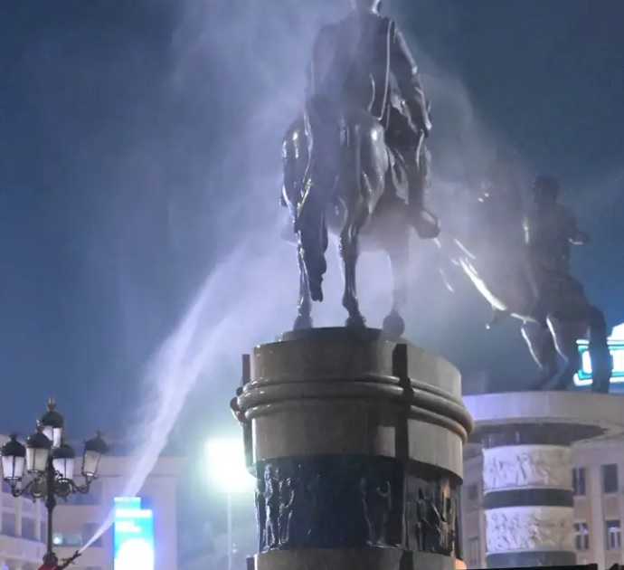 Текстот Освен улиците и спомениците низ Скопје видоа вода е превземен од МАКФАКС.