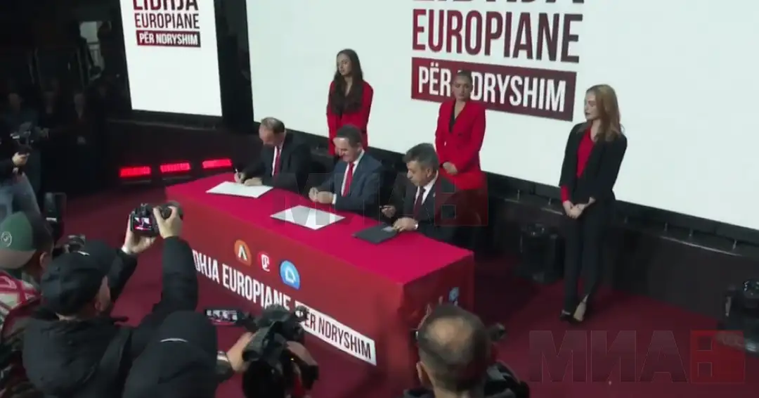 Лидерите на албанскиот опозициски блок Африм Гаши, Изет Меџити и Биљал Касами синоќа во Тетово потпишаа заедничка декларација на коалицијата Европски сојуз за промени за заеднички настап на претстојните парламентарни и претседателски избори.