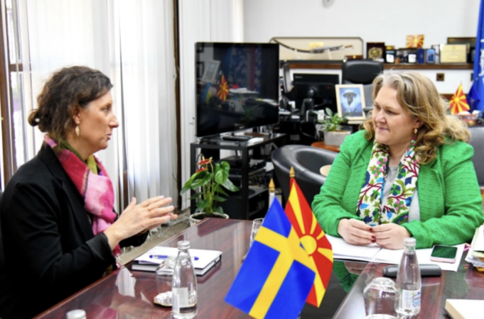 Амбасадорката Ларсон Јаин, како што наведува МО во соопштението, се заблагодари за јасната поддршка од Северна Македонија во периодот на приклучување на Шведска во НАТО.
