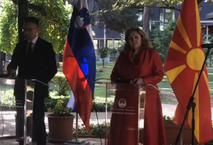 Таа на денешната прес-конференција во Скопје со словенечкиот министерот за одбрана, Марјан Шарец одговарајќи на новинарско прашање посочи дека стратешката цел на државата е членство во НАТО и ЕУ и дека секој кој ќе се обиде да го попречи тој пат не може да биде пријател на државата.
