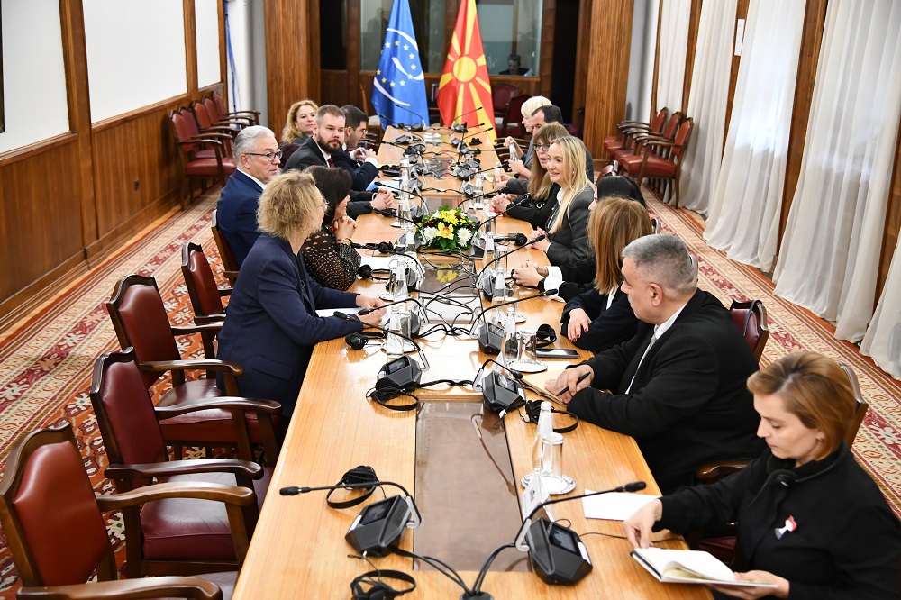 Шефицата на Делегацијата на Собранието на Република Северна Македонија во Парламентарното Собрание на Советот на Европа (ПССЕ), Марија Петрушевска, и членовите: Бисера Костадиновска-Стојчевска, Сања Лукаревска и Беким Ќоку, денеска остварија средба со Теодорос Русопулос, претседателот на ПССЕ.