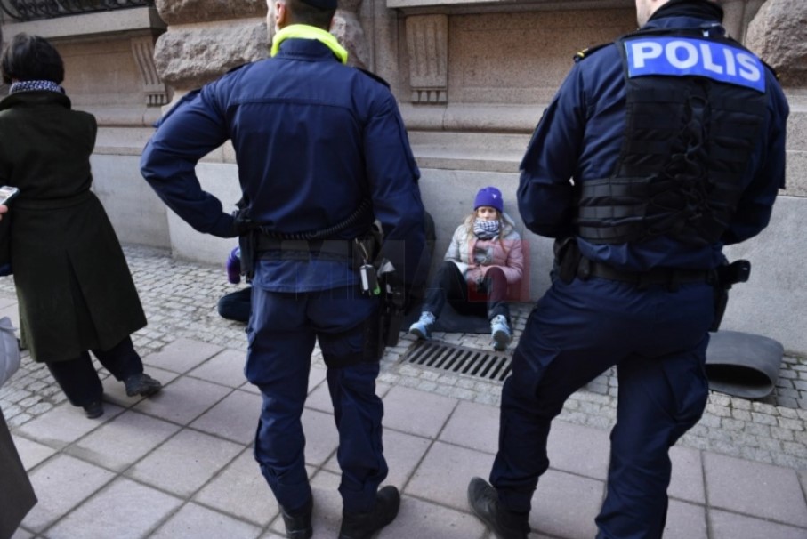 Таа заедно со уште 50 активисти и вчера го блокираше влезот на шведскиот парламент за да покаже дека земјата ја игнорира климатската криза.
