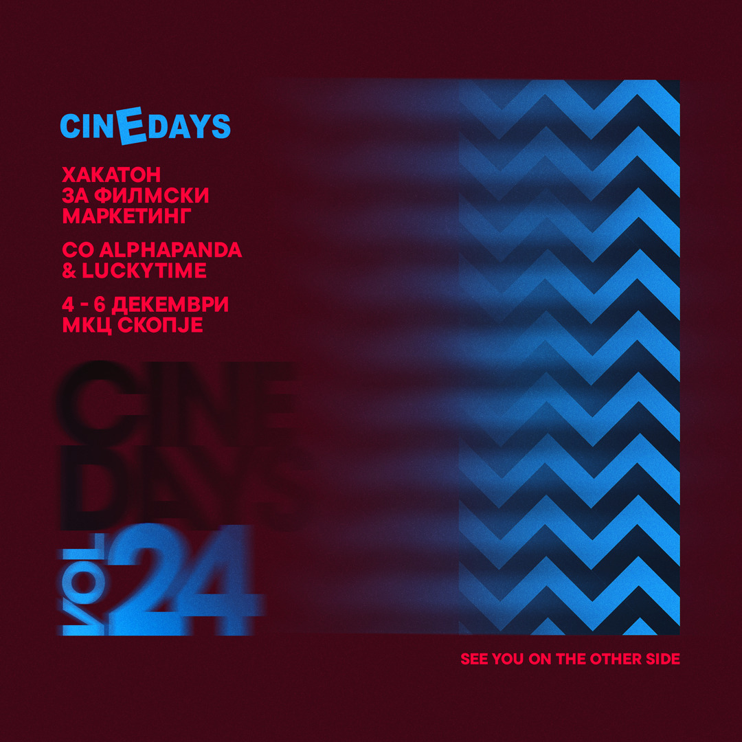 Фестивалот на европски филм „Синедејс“, во соработка со престижните европски маркетинг агенции Alphapanda и Luckytime, го објавува повикот за учесници на дводневниот хакатон за филмски маркетинг кој ќе се одржи од 4 до 6 декември во Младинскиот културен центар во Скопје.