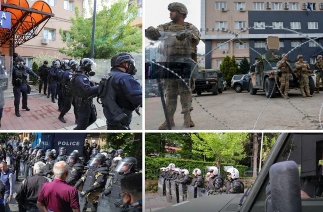 Како што јави МИА, единици на КФОР се поставија меѓу припадниците на косовската полиција, кои ги обезбедуваат општинските згради, и демонстрантите кои бараат новоизбраните градоначалници на Северна Митровица, Звечан, Лепосавиќ и Зубин Поток да ги напуштат зградите и косовските специјалци и нивните оклопни возила да се повлечат.
