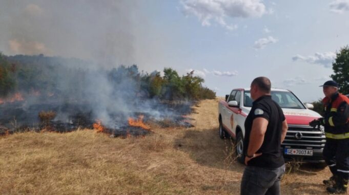 -Со дејствување на двата авиона „Ер трактор“ на Дирекцијата за заштита и спасување (ДСЗ), но и на локалните пожарникари од Гевгелија и Дојран, спречено е проширување на пожарот кон полето, рече Ангелов.