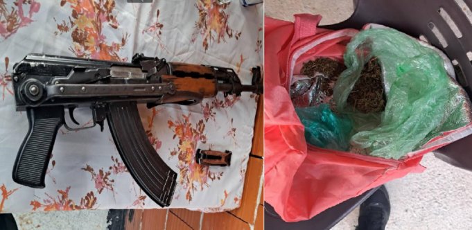 При претрес во неговиот дом, извршен со судска наредба, биле пронајдени и одземени марихуана, автоматска пушка, неколку куршуми за автоматска пушка и осум саксии со развиени стебла од канабис сатива.