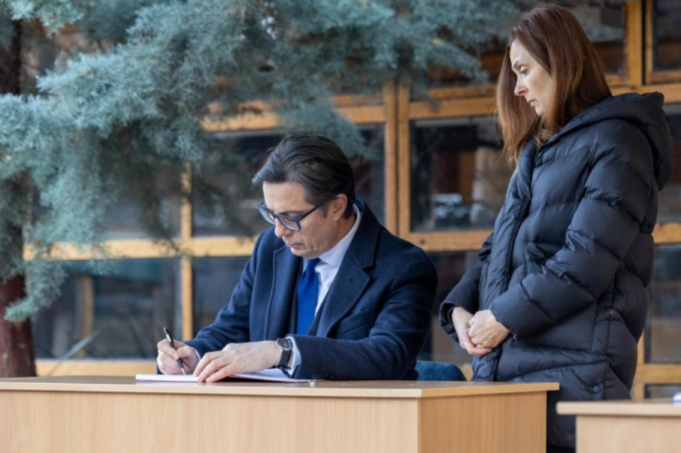 Претседателот Стево Пендаровски вечерва се запиша во книгата на жалост отворена во ООУ „Јохан Хајрих Песталоци“ во Скопје по повод смртта на 14-годишната Вања Ѓорчевска.