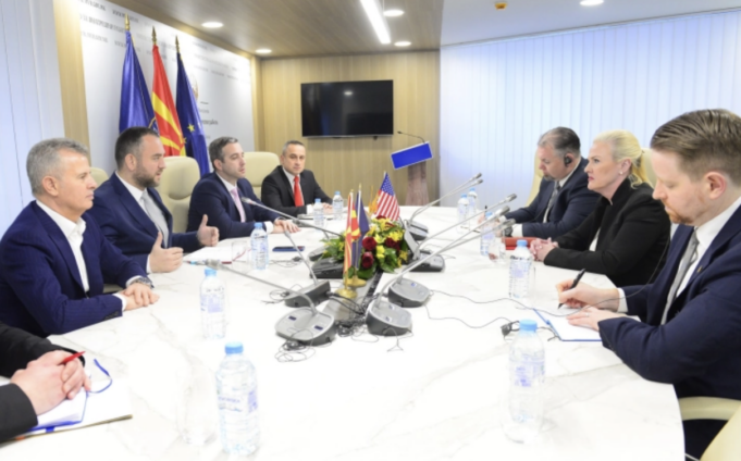 Министерот за внатрешни работи Панче Тошковски, заменик-министерот Назим Буши и дополнителниот заменик-министер Митко Бојмацалиев остварија работна средба со амбасадорката на Соединетите Американски Држави, Анџела Агелер.