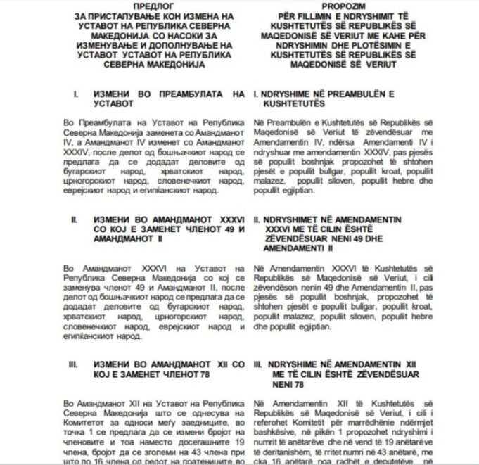 Во таа насока, Владата на Република Северна Македонија го усвои Предлогот за пристапување кон измена на Уставот на