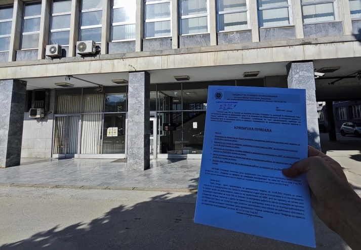 Денес Синдикат на Полиција во Македонија – СПМ до ОЈОГОКК поднесе кривична пријава против помошник на министер во оддел за општи и заеднички работи, началник на сектор за набавки, менаџмент и логистика, началник на одделение за јавни набавки и примена на стандарди во МВР, други одговорни лица во Министерството за внатрешни работи и против правно лице „Министерство за внатрешни работи“ заради основано сомнение дека пријавените сите заедно како одговорни лица сториле кривично дело „Повреда на правото од социјално осигурување“ по член 167 ст.1 и став 2 од КЗ и/или други кривични дела кои се гонат по службена должност.