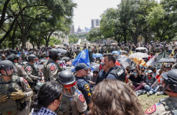 Протестот во Тексас и другите протести низ земјата уследија по протестите на Универзитетот Колумбија во Њујорк, кои се уште траат. Активистите во универзитетскиот кампус синоќа го пропуштија рокот да го напуштат кампот со околу 120 шатори.