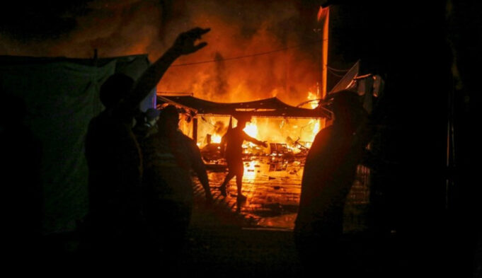 In Gaza, an Israeli attack outside a major hospital set a makeshift tent village ablaze. At least four people were killed and dozens… pic.twitter.com/wOW9n8otgs
