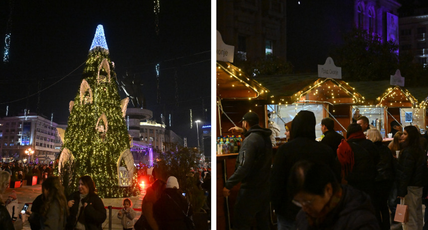Во Скопје вечерва светна новогодишната елка и официјално беше отворен Божиќниот маркет, со што симболично беше означен почетокот на празничната магија во главниот град.