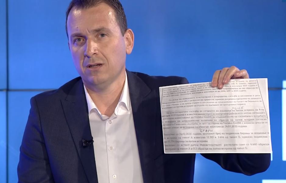 Талевски: „Еве документ, министерот во техничката влада Наќе Чулев испрати барање за набавка за пасоши со старото име“.