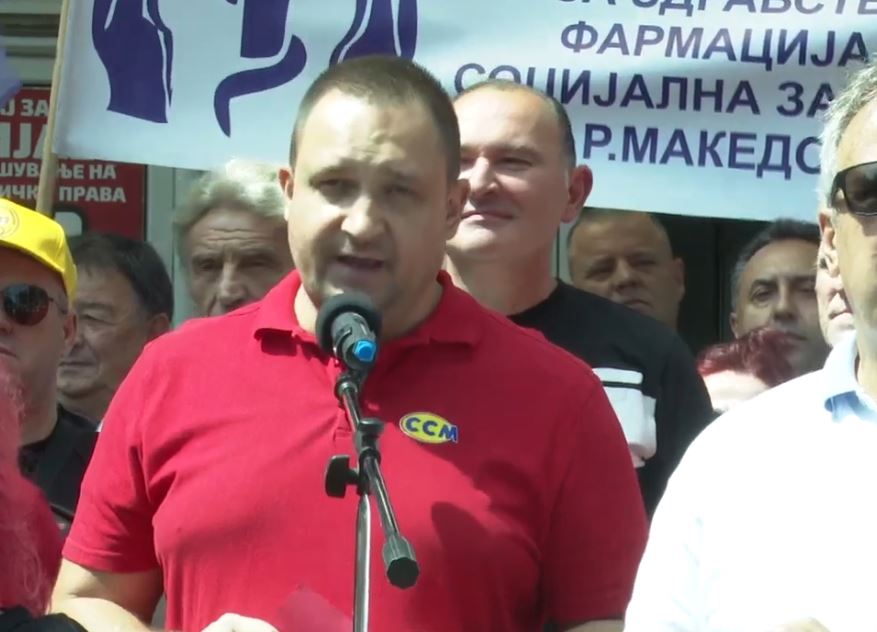 -Денеска ние работниците се собравме пред Работничкиот дом, домот кој сакаат да го конфискуваат од нас за да го уништат синдикалното движење. Работничкиот дом пред кој повеќе од 70 години ги започнувавме сите протести, сите штрајкови и денеска го започнуваме големиот работнички протест. Ние работниците дадовме црвен картон на судот заради тоа што направи обид да изврши притисок врз синдикатите да ги уништи, дозволи функционерска чизма на вратот на работниците за да молчат, да бидат понизни, тоа што го направија денеска го гледаме на дело. Ние синдикатите, ние работниците, ние граѓаните, пензионерите сме сите тука денеска за да покажеме дека колку повеќе не напаќаат посилни не прават и колку повеќе пробуваат да ги уништат синдикатите ние се повеќе сме силни, порача Трендафиловски.