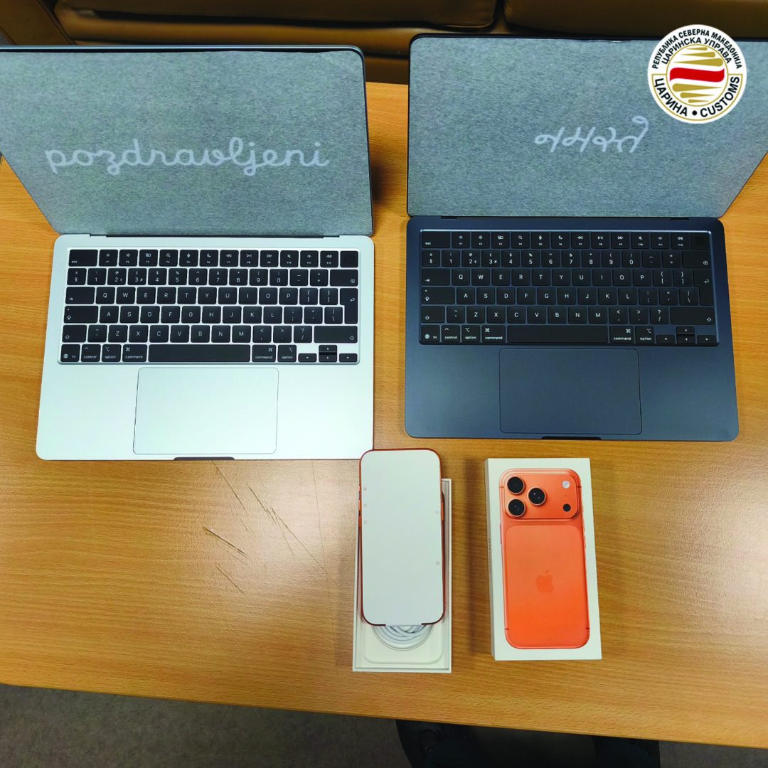 Во друг случај царинските службеници од Меѓународен Аеродром Скопје при контрола на багаж на патник, македонски државјанин, кој допатувал со лет од Лондон пронајдоа два лаптопи и еден мобилен телефон од брендот „Епл“.