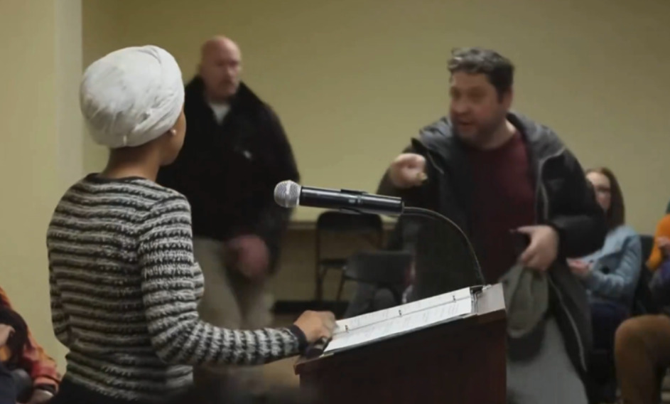 NEW — Rep. Ilhan Omar was just charged by a man at a town hall event in Minneapolis. Crowd says he “sprayed her” with something.