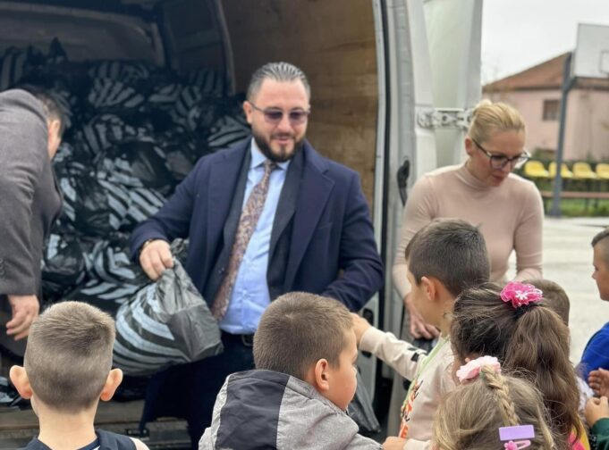 Директорот на Дирекцијата за Управување на одземен имот, Дритон Небиу, деновиве додели пакетчиња со школски прибор за децата од општините, Могила и Струмица.