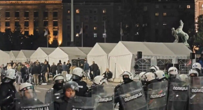 Во исто време, во непосредна близина, во шаторска населба со прекар „Чациленд“, се собраа и поддржувачи на владата, а меѓу двете групи беше поставен силен кордон од полицијата за немири, пишува Нова.рс.