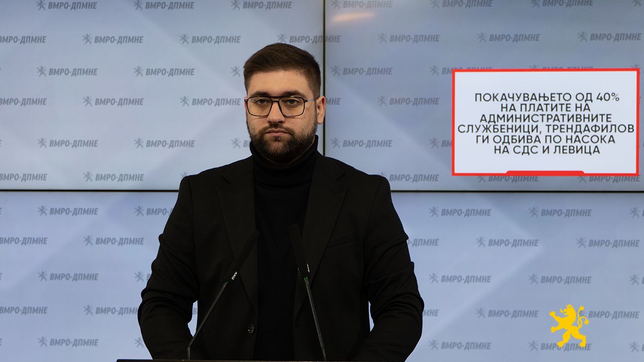 Покачувањето од 40% на платите на административните службеници, Трендафилов ги одбива по насока на СДС и на Левица. Избраникот на СДС кој беше наместен преку Јованка Тренчевска за претседател на ССМ, Слободан Трендафилов, и ден денес продолжува да работи за СДС, а не за интересот на работниците, истакна на прес-конференција Валентин Манасиевски, член на ЦК на ВМРО-ДПМНЕ.