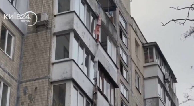 Поранешен советник на украинското Министерство за украински работи објави видео на Икс за кое тврди дека покажува импровизирано „јаже“ од ќебиња и чаршафи спуштено низ прозорец од страна на жителите на Киев во обид да избегаат од една од погодените згради, која се запали по рускиот напад.