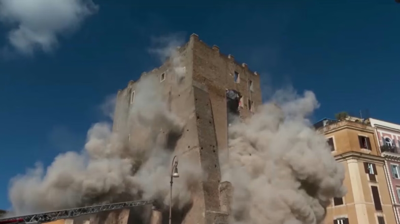 Текстот (Видео) Се урна дел од кулата Торe деи Конти во центарот на Рим – еден работник заробен под урнатините, четворица спасени е превземен од МАКФАКС.