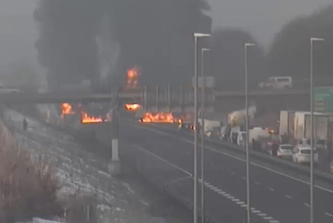 Текстот (Видео) Тешка несреќа во Словенија: Експлодираше цистерна, автопатот е затворен е превземен од МАКФАКС.
