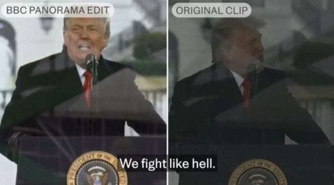 Доналд Трамп ѝ се закани на Би-би-си со тужба од 1 милијарда долари поради контроверзен клип во документарната програма „Панорама“ од октомври 2024 година, емитуван една недела пред претседателските избори во САД. Во него беше прикажан монтиран говор на Трамп во пресрет на немирите во Капитол во 2021 година, оставајќи впечаток дека им рекол на своите поддржувачи дека ќе оди со нив до американскиот Капитол за да „се бори жестоко“.