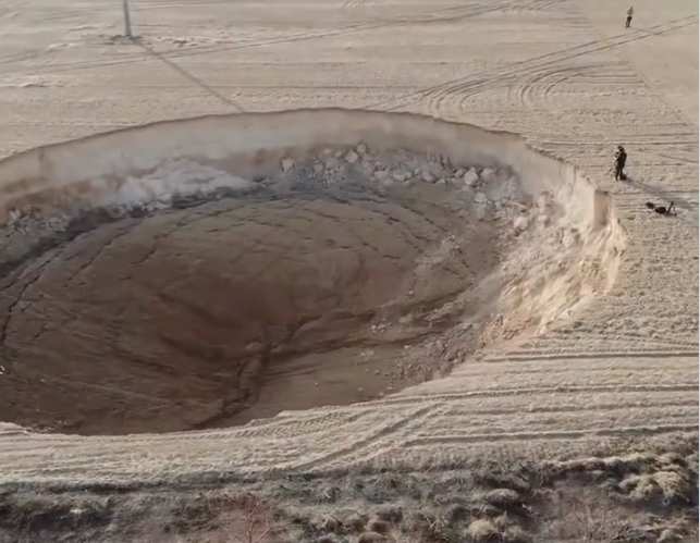 Огромна дупка со дијаметар од 37 метри и длабочина од 12 метри е создадена на 24 февруари во Карапинар, град во турската област Коња.