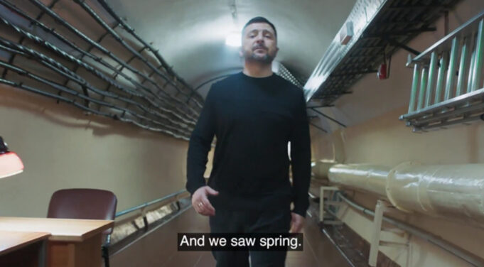 Во видеото, тој ја покажа и внатрешноста на бункерот на улицата Банкова во Киев, од каде што им се јавил на светските лидери и побарал оружје во раните денови од војната.