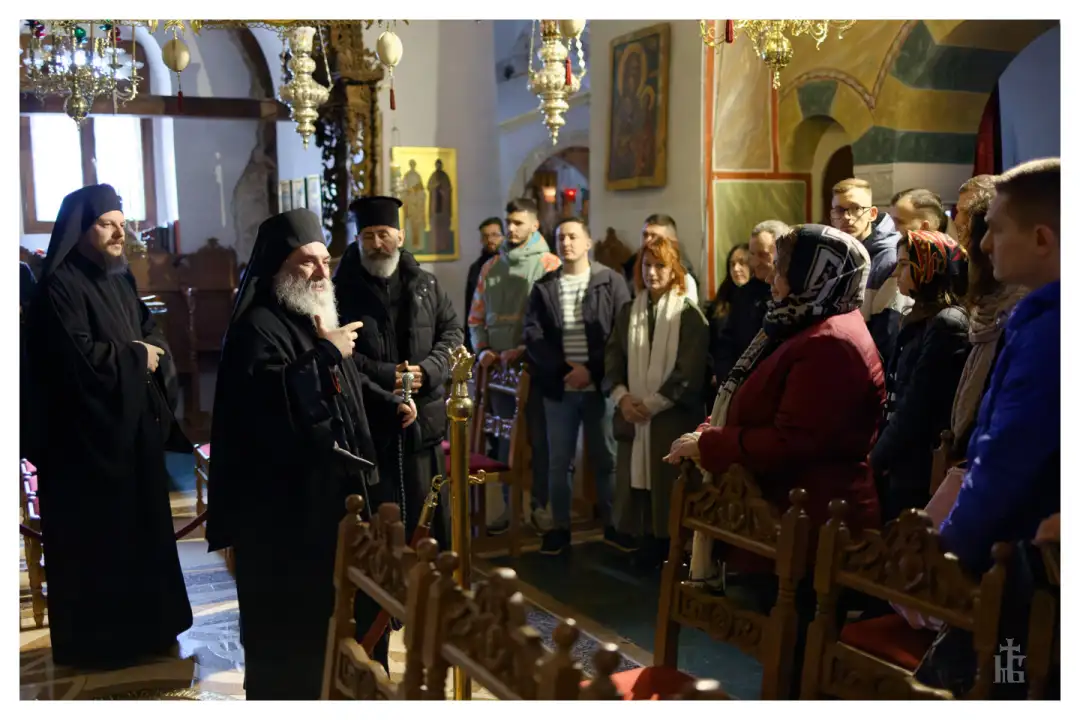 – Прво, во сечесниот храм на Чесниот Претеча, а потем и во гостоприемната одаја. На групата, предводена од благоговејниот презвитер отец Илија Мазнику, повеќегодишен пријател на Старецот и на Бигорски, им беше раскажана историјата на Манастирот и на Светињите во него. На младите Христијани од Тирана, Владиката г. Партениј, од своето сочувствително родителско срце, им излеа вдахновени зборови на мудрост, утеха и поучение, како тивки води на спокојот за ожеднетите патници низ пустината на овој свет, нагласуваат од Бигорски.