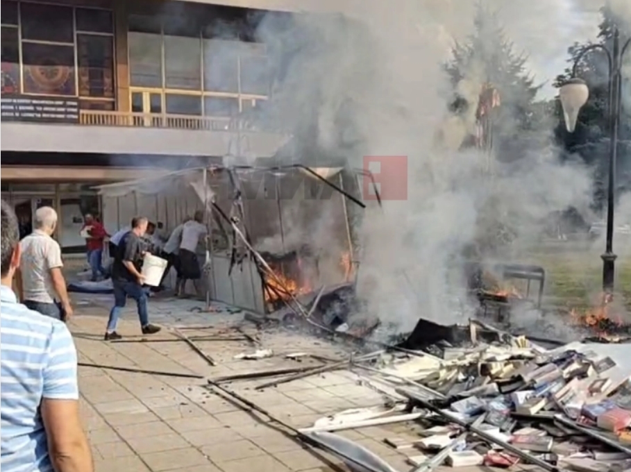 Пожар избувна на штандовите за продажба на книги пред тетовскиот Центар за култура околу 17 часот. Граѓани, вработени во околните кафулиња и други дуќани први се обидоа да го изгаснат огнот употребувајќи кофи со вода и ПП апарати.