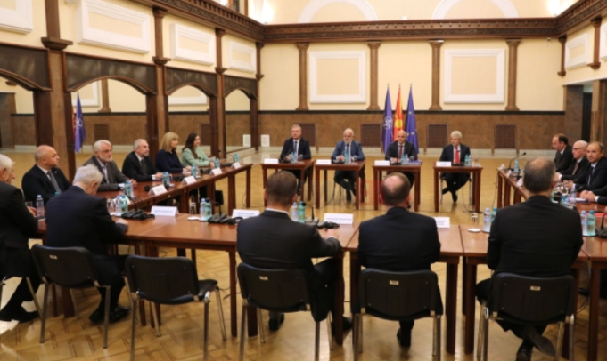 На средбата присуствуваат премиерот и лидер на СДСМ Димитар Ковачевски, лидертот на ДУИ Али Ахмети, на Алијансата на Албанците Арбен Таравари, лидерите од Европскиот сојуз за промена Изет Меџити, Билал Касами, Африм Гаши, на НСДП Горан Мисовски, на ДОМ Маја Морачанин, на ВМРО-ДПМНЕ Христијан Мицковски, на Демократскиот сојуз Павле Трајанов…