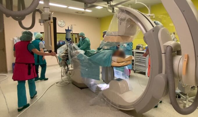TAVI– Transcatheter Aortic Valve Implantation е всушност замена на срцев залисток/ валвула, односно третирање на тешка аортна стеноза без операција, во овој случај 39та по ред. А втората TEVAR е сложен хибриден зафат на торакоабдоминалната аортна аневризма од која до сега се изведени 59 во нашата клиника.