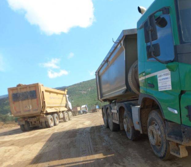 Пет камиони со зелена боја, нови, купени во мај, со ознаки на К.С.А. Интернационал, фирмата во сопственост на зетот на Али Ахмети, Куштрим Смајлај, се ангажирани за работа во ТЕЦ Осломеј и работат на санација на свлечиште, објави Телма.