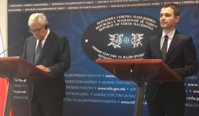 Заедничка прес-конференција на италијанскиот вицепремиер и министер за надворешни работи и меѓународна соработка, Антонио Тајани и министерот за надворешни работи и надворешна трговија, Тимчо Муцунски.